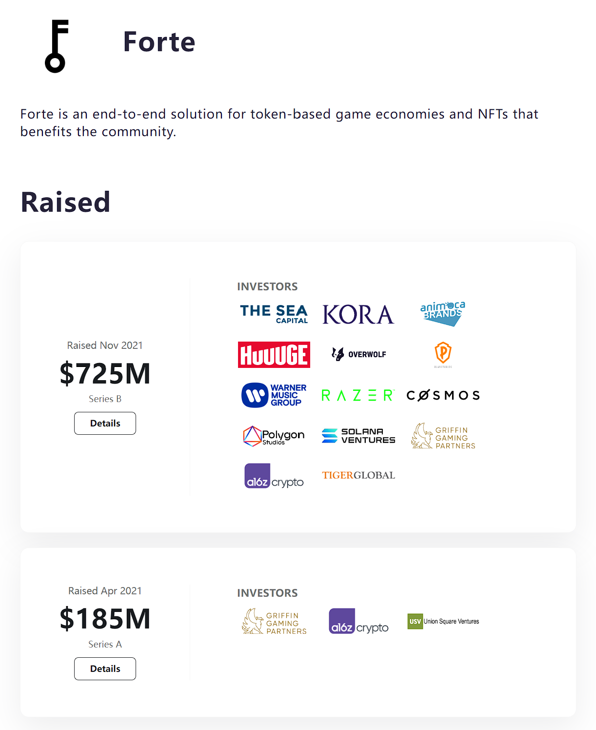 于 2021/4 和 2021/11 分别获得1.85亿美元和7.25亿美元的融资,第二轮融资机构中就有上面的Animoca Brands😆